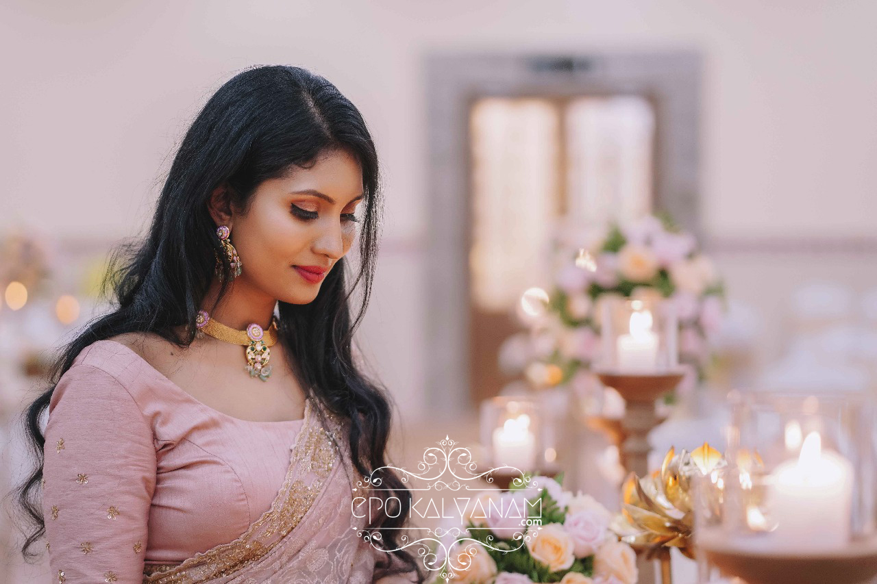 Lia’s love for pastel is one that you’ll see thorough out her stunning choice of attires. For her wedding eve, she chose this gorgeous pastel green saree with pearl embellishments from Panache,Thrissur. She had her heart set on a pearl embellished sari inspired from pictures she came across on Pinterest . Fellow bridezilla’s, remember it always pays to have a vision in mind and the result will be something sweeter than mangoes 😄.