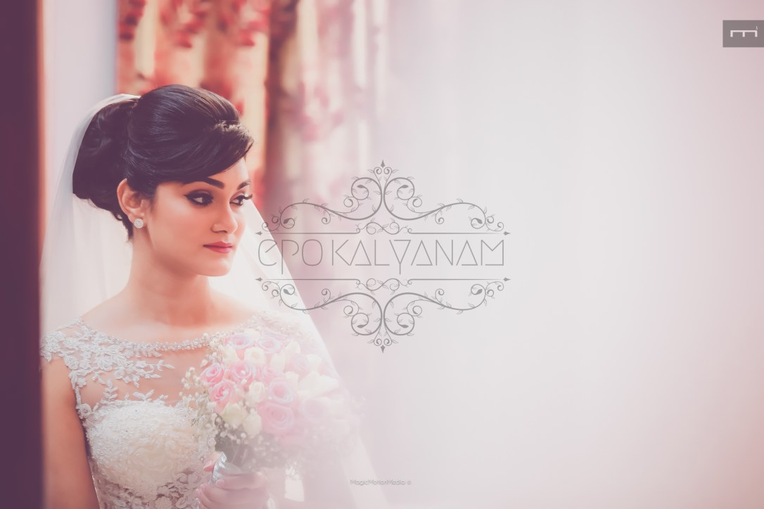 This may seem like a tiny detail but the right belt can truly change the character of one’s gown. Lace wedding gowns are beautiful in their own right, however a little sparkle around your waist can truly transform the whole look and our brides done just that by choosing a handmade bridal sash made out of Swarovski crystals, pearls, and beads. To complete her dream dress, she chose an ivory cathedral length lace edge bridal veil and she was made into the princess she dreamed of by the talented Shalu George who by the way has magic on her fingertips.