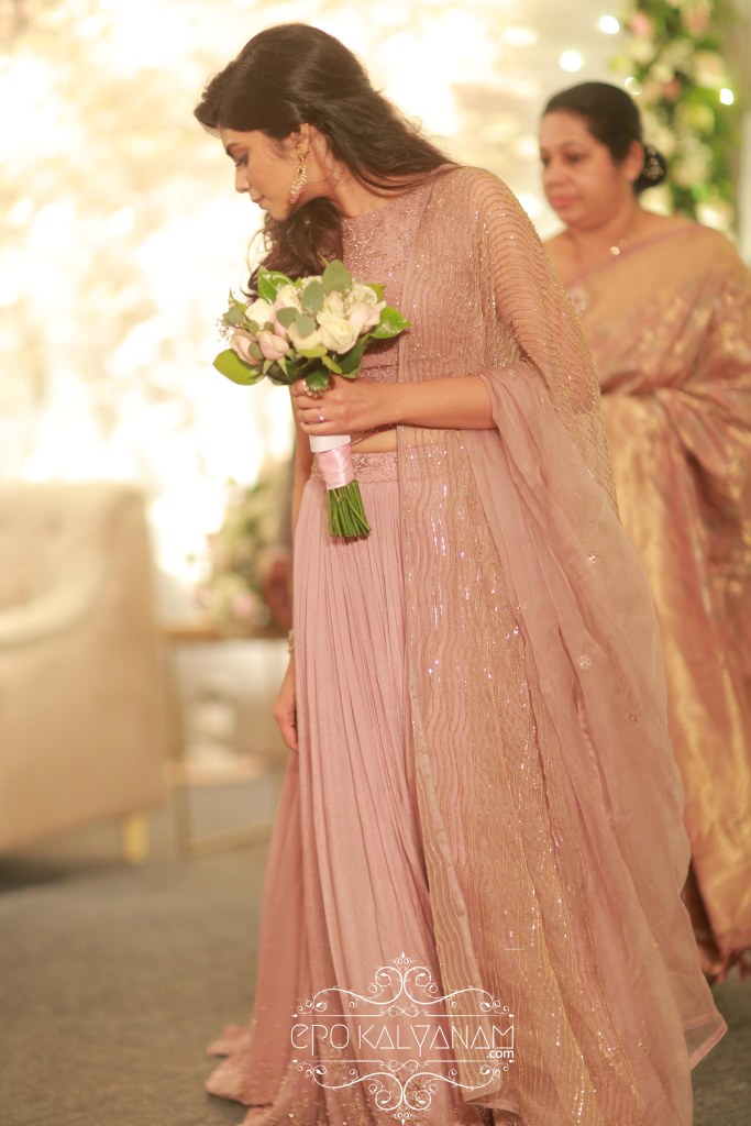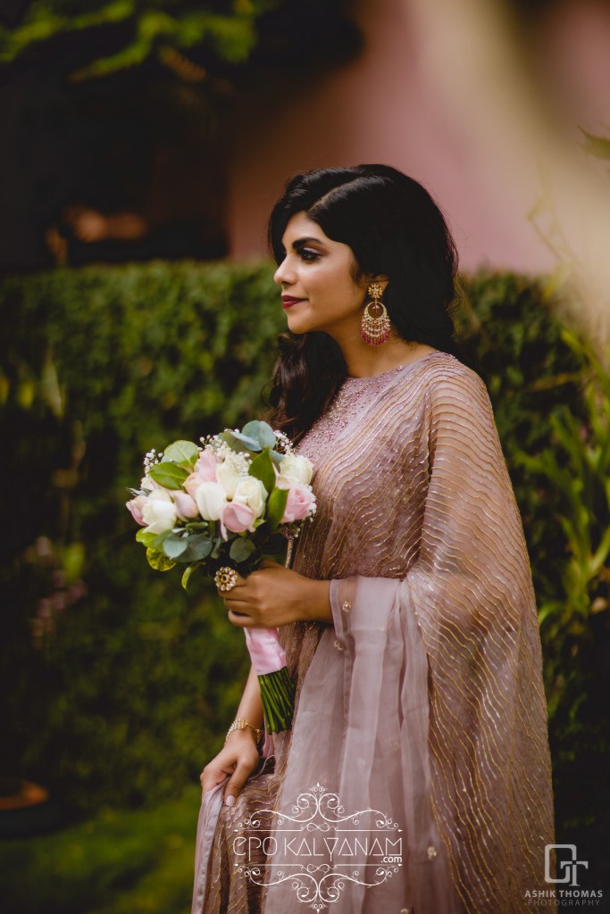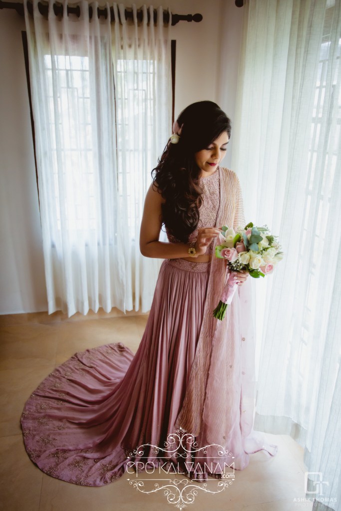Reethu’s beautiful mauve lehenga was custom made at Zueliha, Kochi. Detailed to perfection, was this beautifully embroidered zardosi top and along with it a breathtaking train that stole the show. For a bride who knew exactly what she wanted, the addition of the train was done on pure whim and boy, what a stunning outcome. I think sometimes just trusting your gut and the process is key.