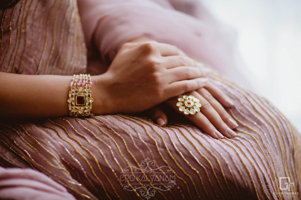 Now if you’re a bride-to-be who typically doesn’t like a great deal of accessories on or around your face, I think the idea of choosing a pretty bracelet is something you can get on board with. Unlike earrings and necklaces, with this little beauty you don’t have to fret if it matches or clashes your neckline and you can choose it to be as subtle or statement making as you wish. Need I say more to get you aboard the bracelet train 🤗. If my magical convincing skills haven’t won you over, might I nudge you gently towards a closer look at Reethu’s beautiful kundan bracelet from MOD, Kochi. Not too much but oh so enough, right ❤️?
