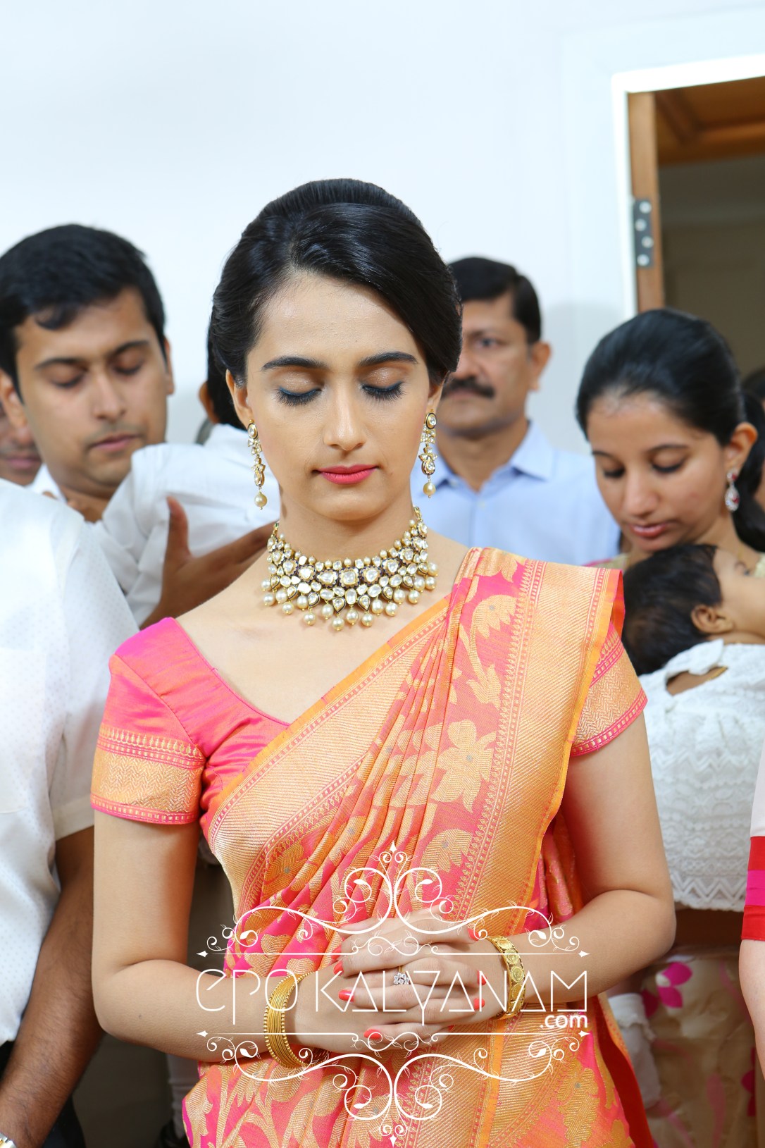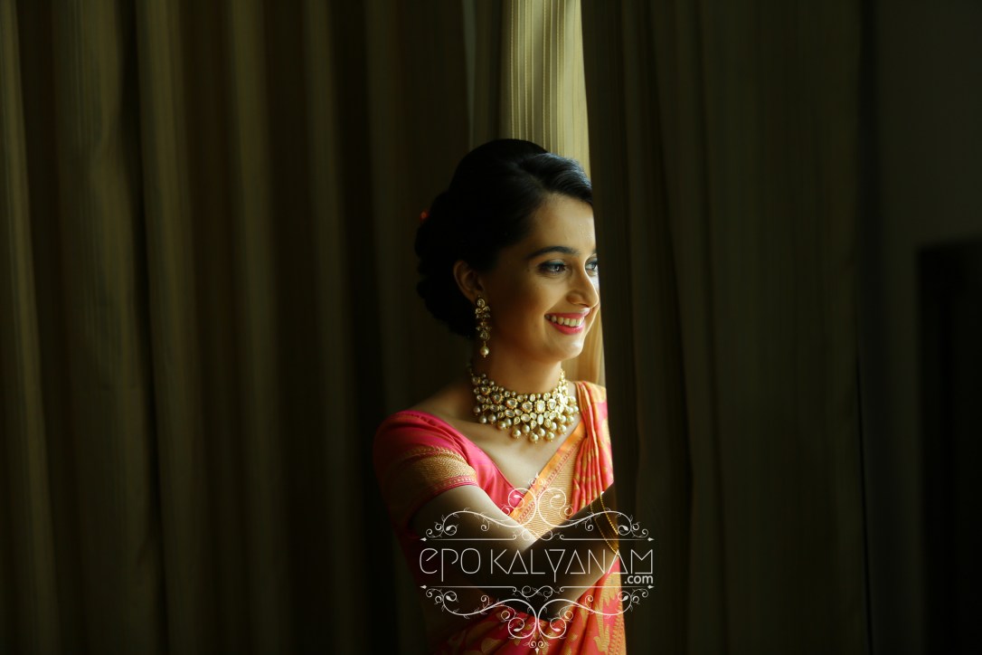 For her makeup, our belle chose to place herself in the hands of the very known Jolly from Jolly’s Hollywood Saloon, Kottayam. From updos to beachy waves, as a bride-to-be you’re bombarded with multiple possibilities on how to style your hair for your big day. But whichever style you go for, there’s one crucial part you should make sure not to neglect- the humidity 😉. As we all know and have felt 😆, humidity levels are often pretty high in Kerala and many a times you’ll end up looking like a frenzied bee hive if you’re not in an air conditioned environment (story of my life 🙄). So your safest bet will be to go for an updo. Today there are so many different options for updos from classic styles, to avant-garde takes, to romantic and soft looks or something more elegant so choose accordingly to your taste.