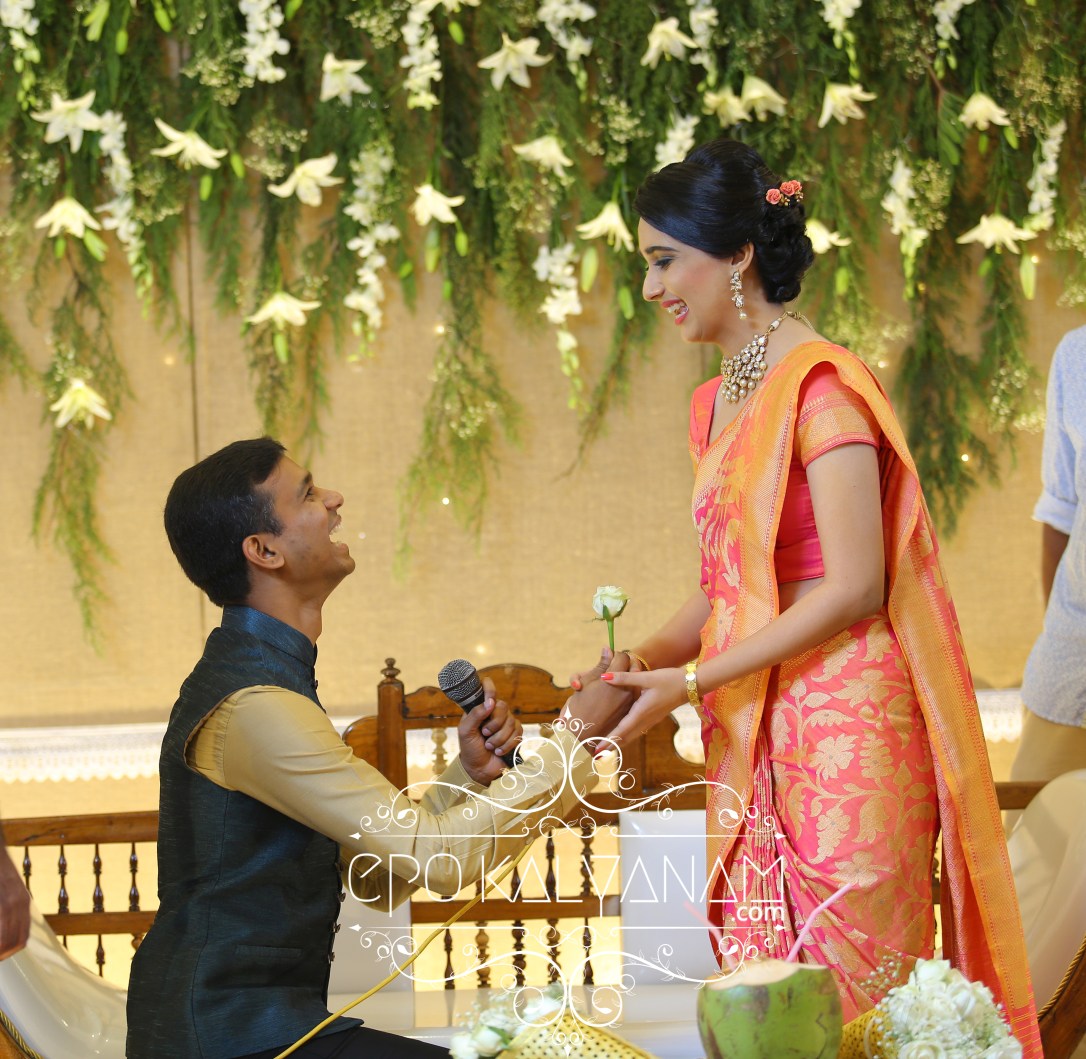 Their stage décor for the engagement is one that truly delivers a rustic vibe. Our bride was very particular on wanting white lilies and ferns everywhere and that is exactly what the famous Paranashala, Kottayam delivered. They are immensely popular and it’s easy to see why. Today a lot of brides and grooms are cozying up to the warm minimalistic trend of ferns and flowers and I personally couldn’t be in love more 😍.