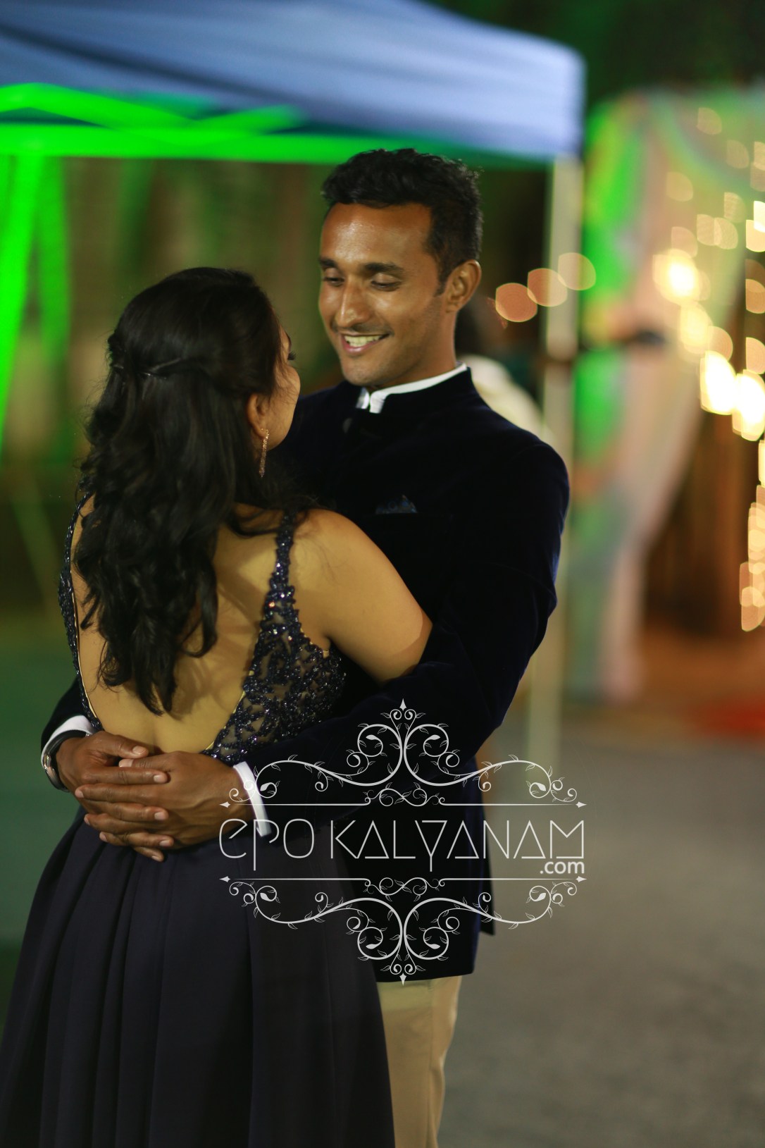 And to celebrate their love, a wedding reception was held after their big days for all their friends and family. And honestly, this is one wedding where I can’t seem to pick my favorite outfit. For the after party, Riddhi chose to dazzle in this gorgeous navy blue gown with a nude bodice embellished with cut beads designed again by Shruthi Savanth. The whole look was put together with these stunning chocker necklace and drop earrings .